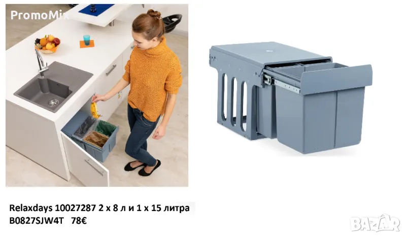 Relaxdays 10027287 е кош за разделно събиране на отпадъци, проектиран за кухненски шкаф.