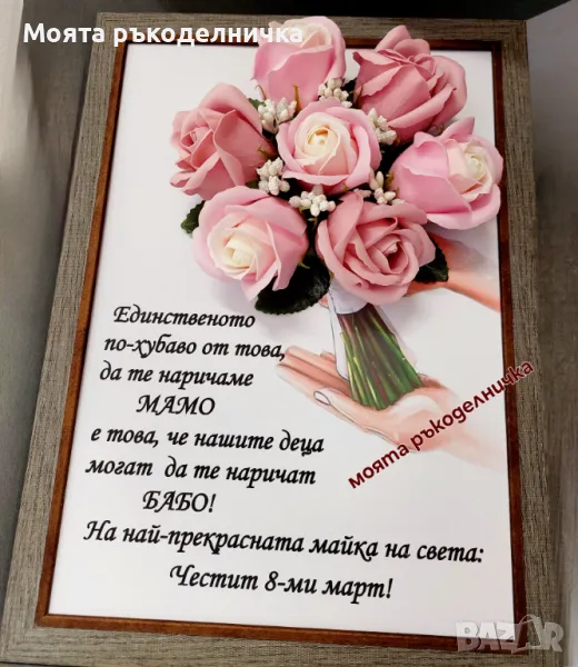 Изработвам и в размер А4 21/30 см със сапунени рози, рози фоам или изкуствени цветя. Цена 30 лв. За поръчки и запитвания, пишете или се обадете