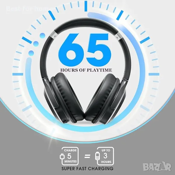 Безжични Bluetooth слушалки RUNOLIM, безжични слушалки с микрофон за 65 часа, 6 режима EQ слушалки, преносими сгъваеми леки бас стерео слушалки за уроци онлайн/телефон/таблет/компютър.