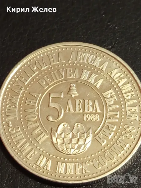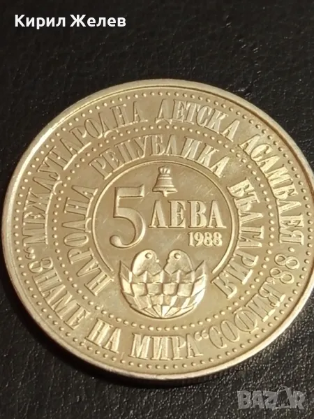 Юбилейна монета 5 лева 1988г. НРБ тема Международна детска асамблея Знаме на мира 34627 → Обява 49167537