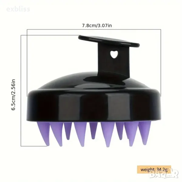 - Уникален дизайн: Специално проектираните силиконови зъбци осигуряват оптимално масажиране на скалпа.