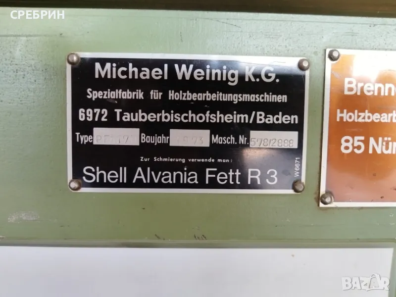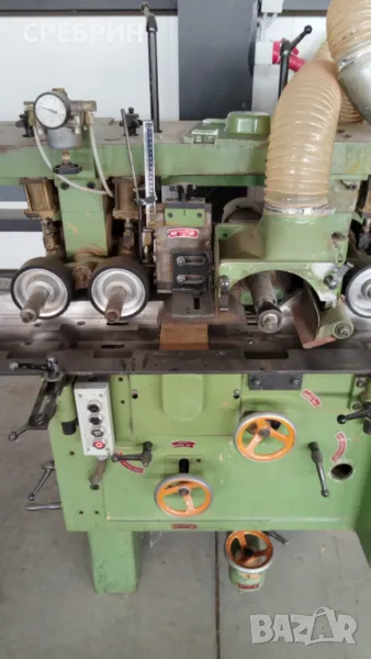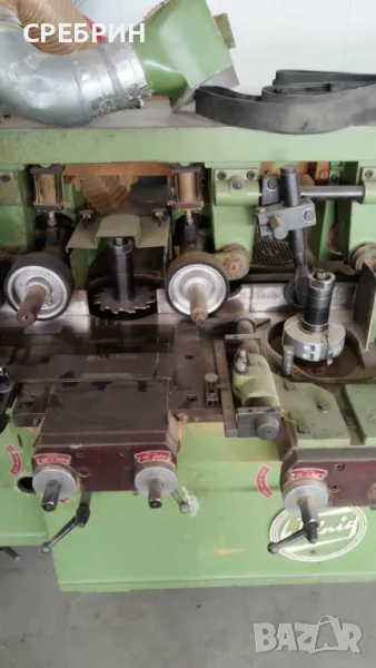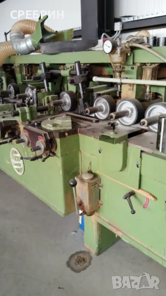 В наличност и топ състояние немска четиристранка марка WAINIG с 6 глави и широчина 180мм чисто и 120мм височина чисто. С автоматично качване и сваляне на плота. С пневматично притискане на детайла, регулируемо в зависимост от материала дали е сух или мокър. Шеста последна долна глава с възможност за слагане на циркулярни дискове с размер ф 200мм с възможност да разцепват детайл с височина до 50 - 60мм. Машината е в комплект с 4 прави глави с по 4 ножа и 2 профилни + всички меки връзки за аспирация. Машината е стар модел, но в топ състояние + настройка на всички глави в дълбочина и височина. За повече информация по телефона. На склад разполагам с още 5 броя четиристранки и над 140 други машини.Адрес село Черганово на 2 км от Казанлък срещу фабрика за дървени къщи ECOZID darvodelskimashini.alle.bg