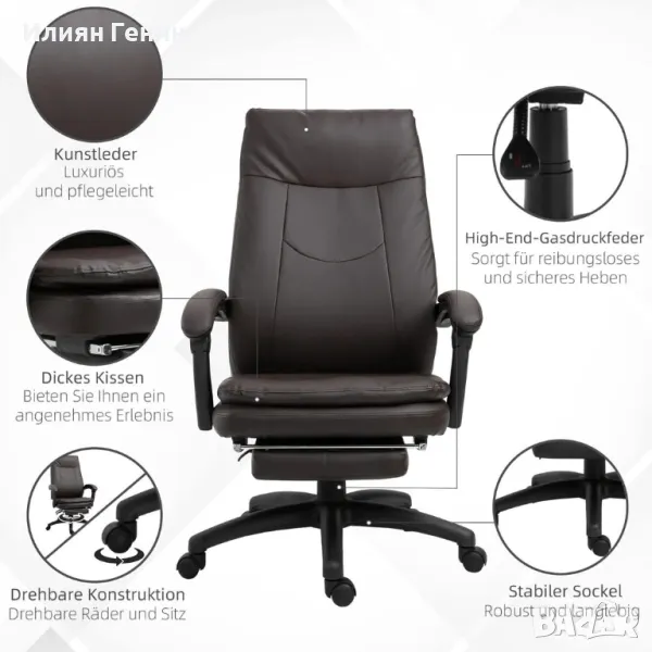 офис стол Vinsetto с поставка за крака, регулируем стол за компютърно бюро с възглавница за облегалка, кафяв, 64 x 64 x 112-120 cm - 350.00лв.