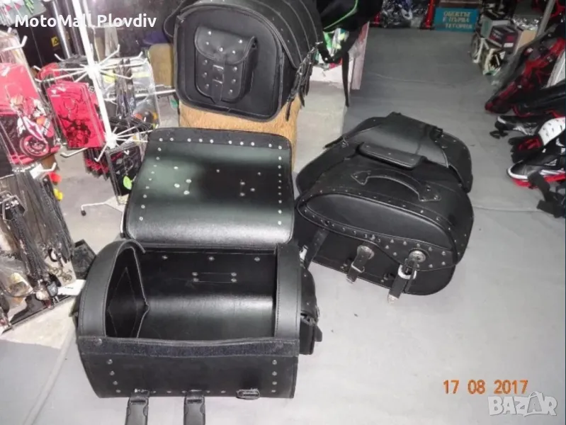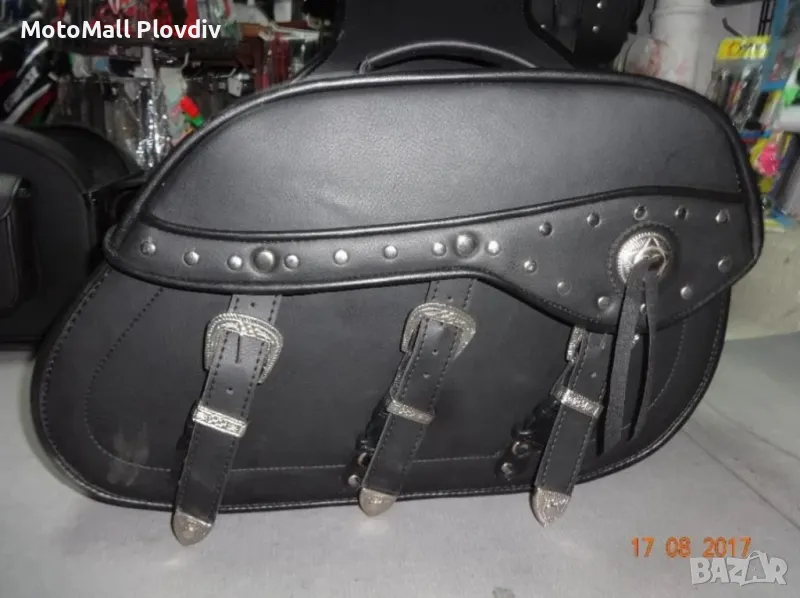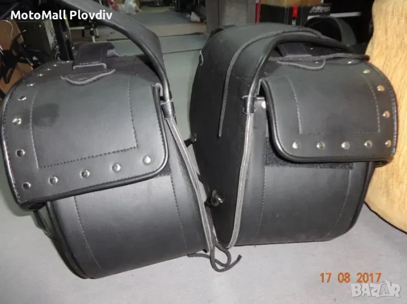 Нови кожен куфар дисаги за чопър рокер мотор мото багаж нови кожени