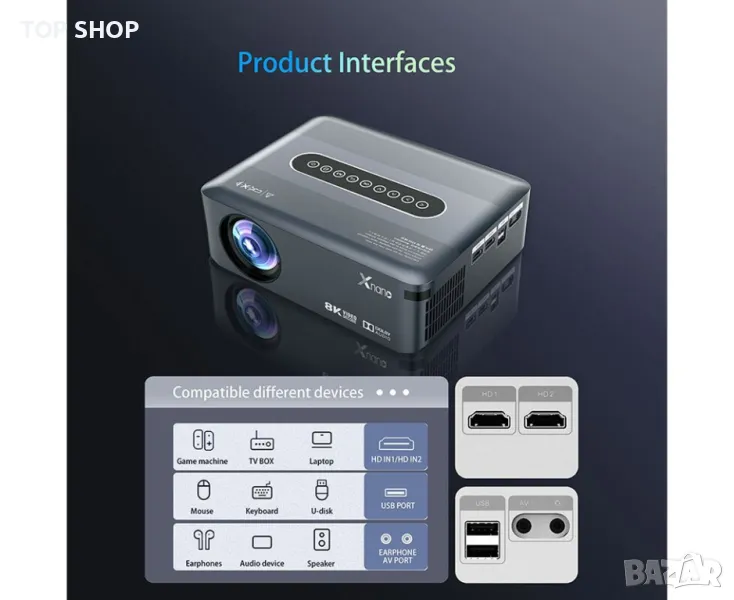 Смарт проектор Xnano X1, 1080P HD WiFi Bluetooth проектор, Вашият най-добър избор! Устройство 2 в 1: проектор и ТВ бокс.