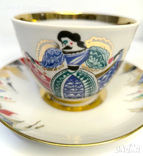 Двоен сет за чай "Карнавал". СССР, Ленинградска порцеланова фабрика (LPF),