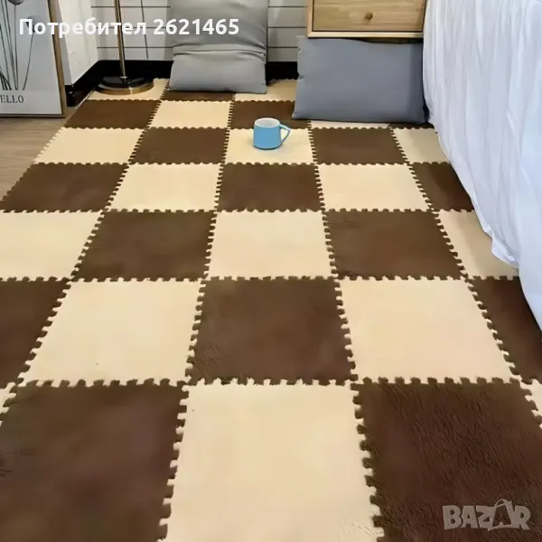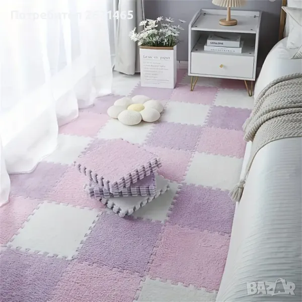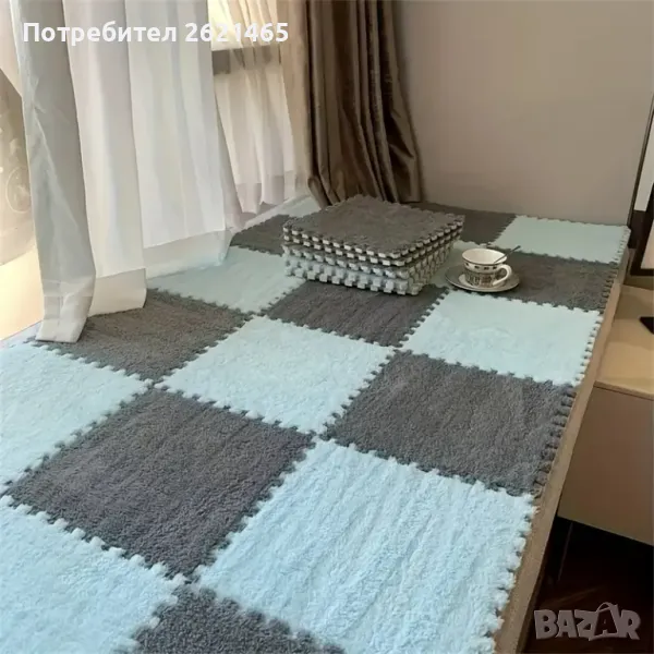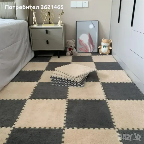 Велурен мек килим - пъзел , комплект от 12 части, за под на детска стая, 30х30 см