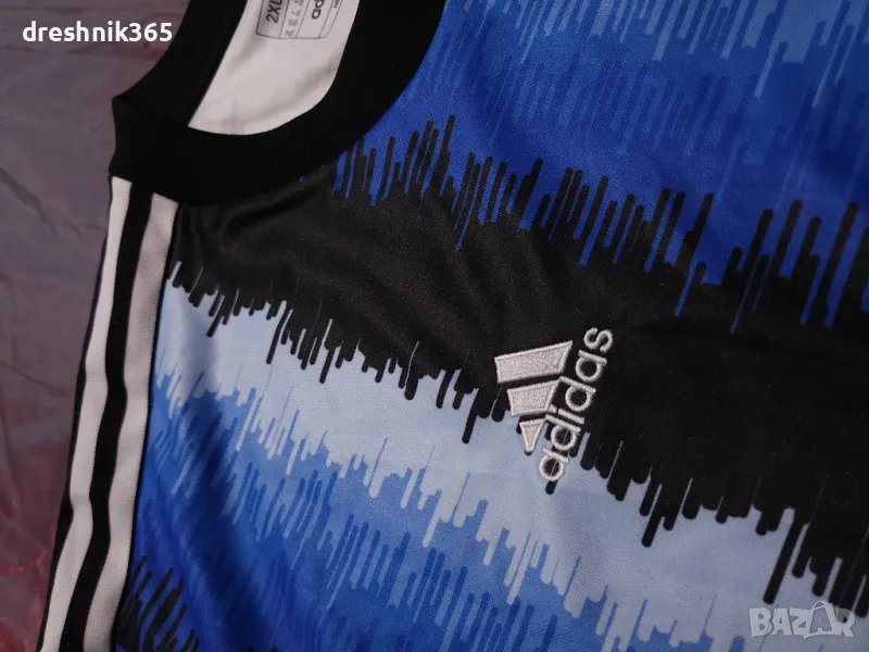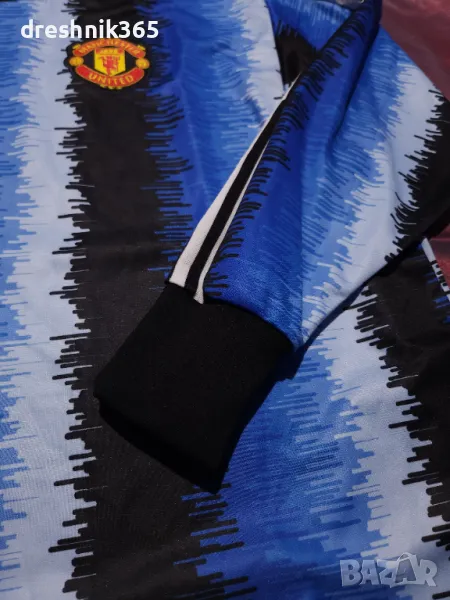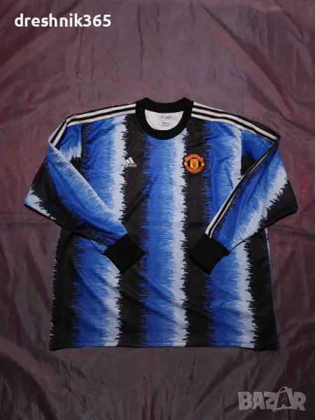Тениската adidas Manchester United е в син цвят и с дълги ръкави. Продуктът е употребяван без следи