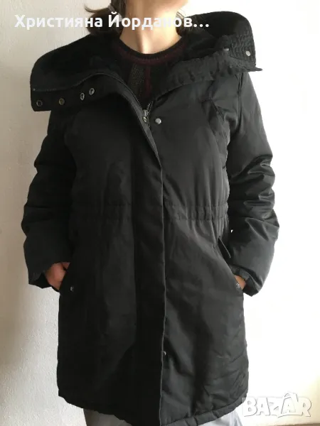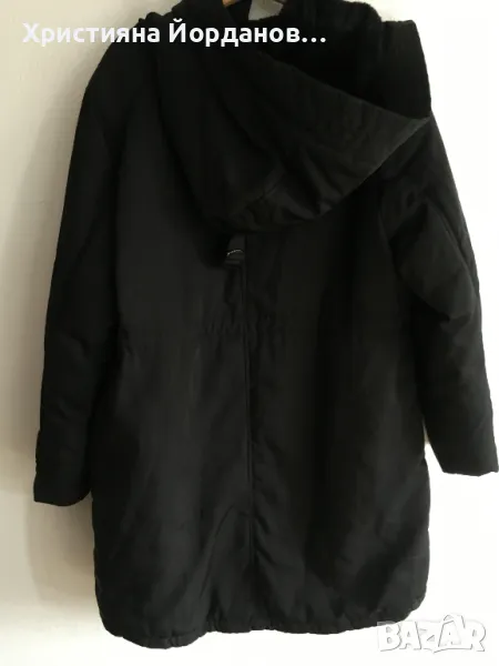 Якето е обличано само веднъж. Топли много. Дълго е, с четири джоба отпред. Два горе и два на стандартно място, с голяма качулка и вътрешна подплата, перфектното зимно яке!!