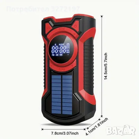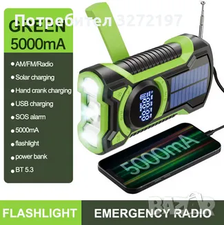 - Радио с манивела, оборудвано с мощна акумулаторна батерия от 5000 mAh, С три опции за зареждане, включително USB зареждане за ежедневно удобство, ръчно манивела за генериране на енергия при спешни случаи и слънчева енергия за устойчива енергия, никога няма да се налага да се притеснявате, че ще останете без захранване, гарантирайки, че ще останете свързани и информирани във всяка ситуация.
