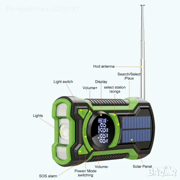 соларно радио-зарядно с множество екстри