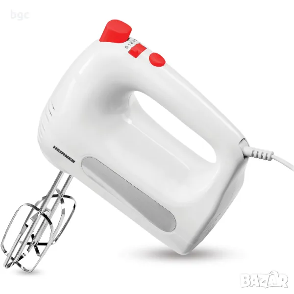 НОВ Ръчен миксер Heinner Hm-3006WH, 300 W, 6 скорости, Бял - 36 МЕСЕЦА ГАРАНЦИЯ