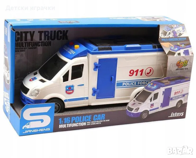 Камион Полицейски микробус, звук и светлини , снимка 1 - Коли, камиони, мотори, писти - 49172591 Камион Полицейски микробус, звук и светлини , снимка 2 - Коли, камиони, мотори, писти - 49172591 Камион Полицейски микробус, звук и светлини , снимка 3 - Коли, камиони, мотори, писти - 49172591 Камион Полицейски микробус, звук и светлини , снимка 4 - Коли, камиони, мотори, писти - 49172591 1/4