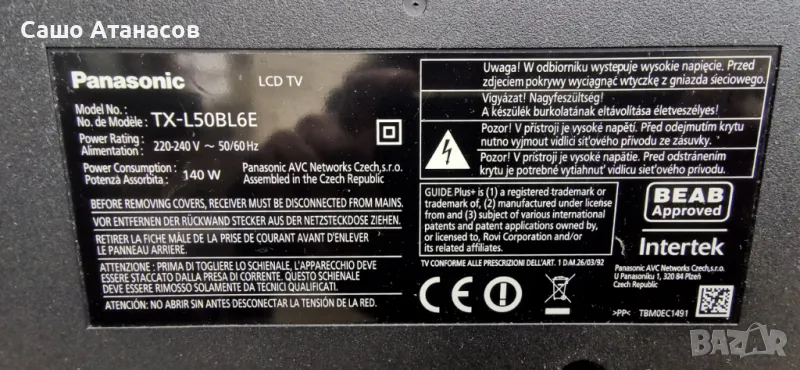 Panasonic TX-L50BL6E със счупена матрица ,TNPA5807 ,TNPH1041 ,6870C-0452A ,TNPA5914 ,8017-01620P → Обява 49173211