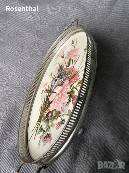 Стар поднос порцелан и метал