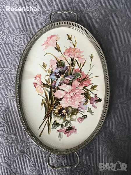 Стар поднос порцелан и метал → Обява 49173527