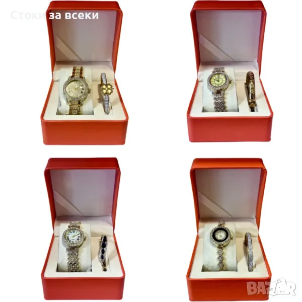 Вариант 1: Часовник с инкрустиран циферблат, гривна с декоративен елемент детелинка;