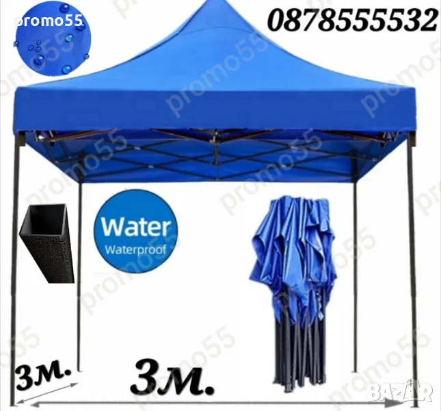 3х3м Сгъваема шатра 18кг. с непромокаемо покривало