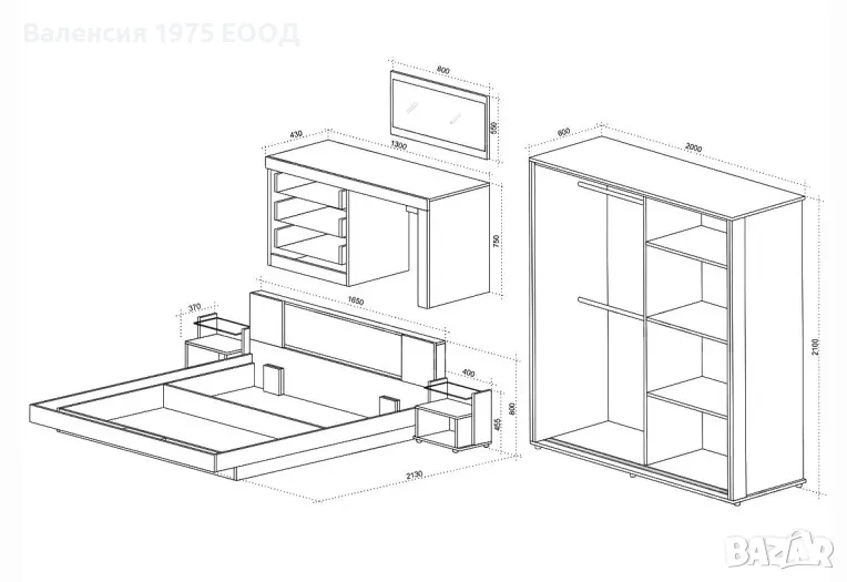 Допълнително може да се поръча скрин/ тоалетка с огледало+ 296 лв;