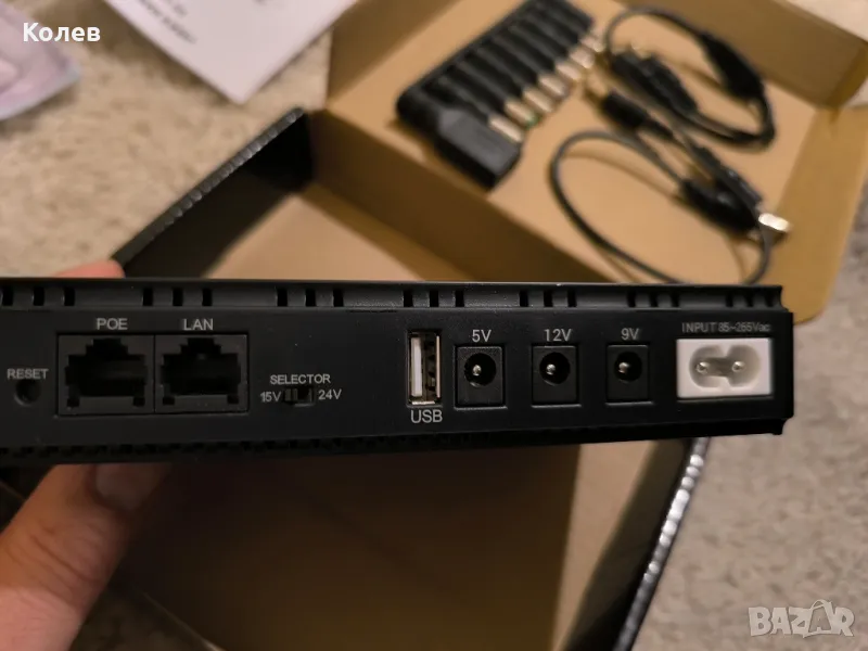 НОВ UPS рутер DC1036P / системи за охранителна камера, 10400mAh, 36W, изход 5V/9V/12V/12V/24V, PoE, LAN, USB, Черен