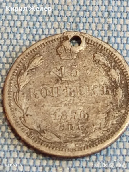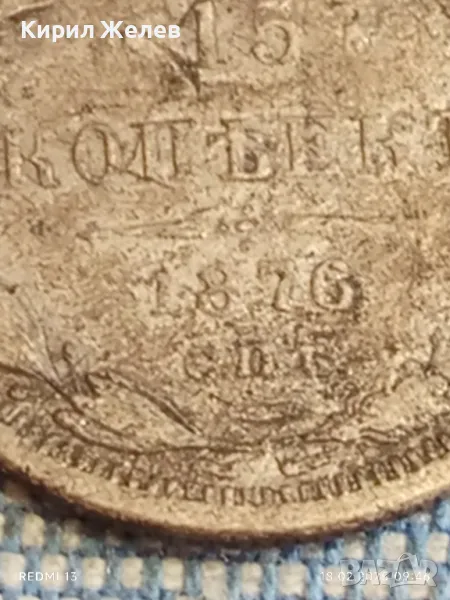 Сребърна монета 15 копейки 1876г. Руска империя Император Николай първи за КОЛЕКЦИЯ 48675 → Обява 49174806