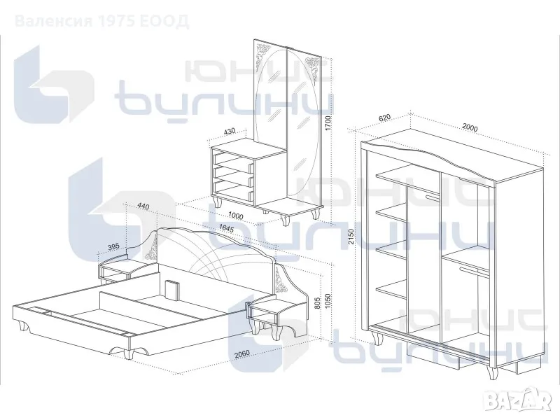 Допълнително може да се поръча скрин/тоалетка+ 341 лв;
