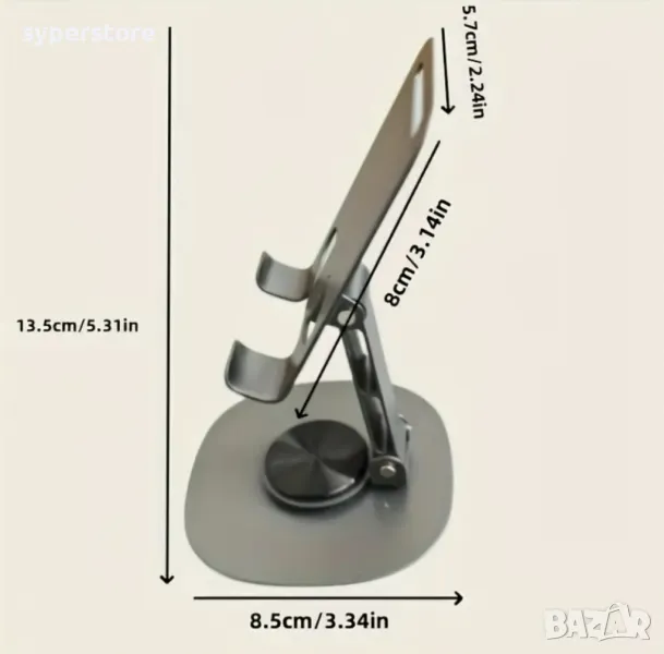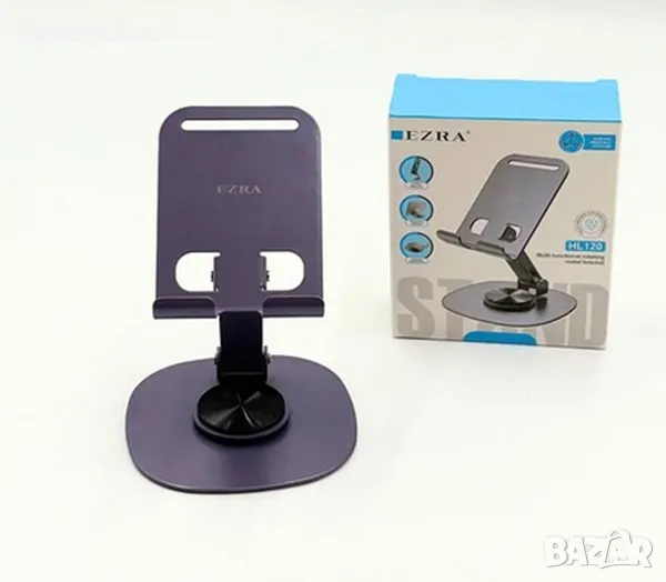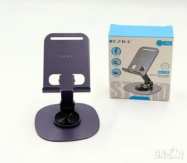 Стилна стойка, изцяло метална, за телефон за Бюро Маса.Сгъваема стойка за телефон с подложка против хлъзгане, с завъртане на 360 гр. и регулиране наклона на телефона.