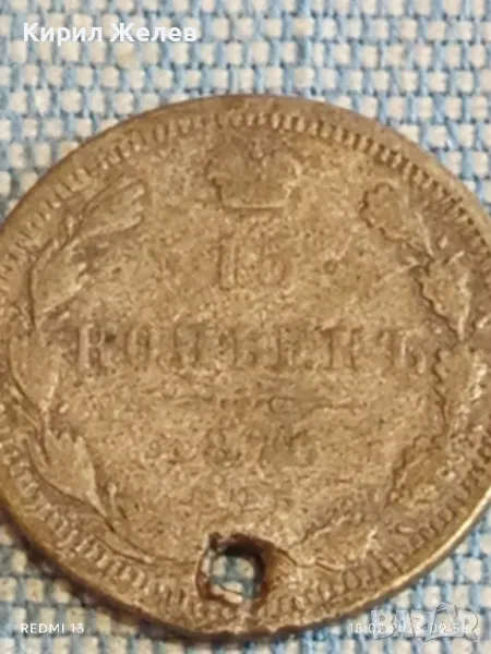 Сребърна монета 15 копейки 1870г. Руска империя продупчена за КОЛЕКЦИЯ 31705