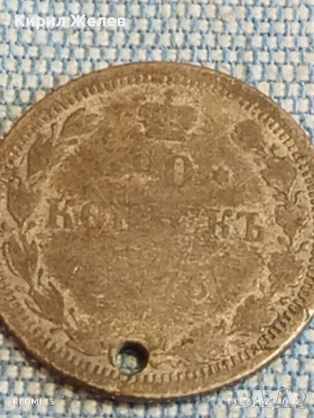 Сребърна монета 20 копейки 1876г. Руска империя продупчена за КОЛЕКЦИЯ 50080 → Обява 49175156