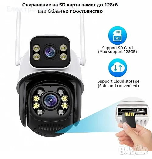 Възможност за съхранение на записи и видеа на SD карта до 128GB или Cloud Storage (облачно пространство);
