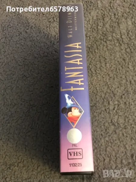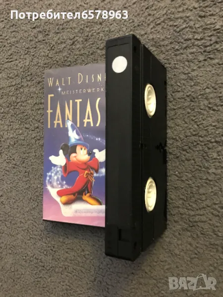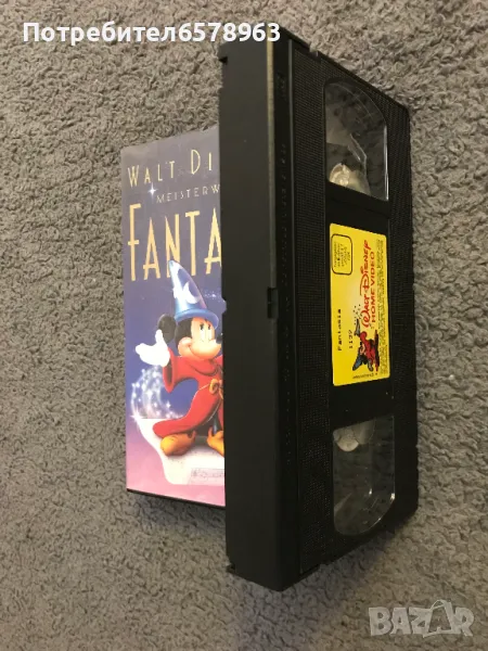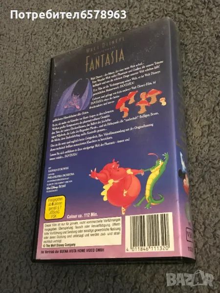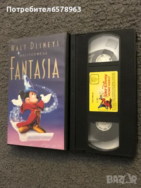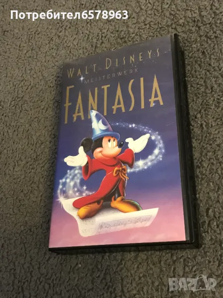 Продавам оригинална видеокасета на Disney '' FANTASIA '' Касетата и обложката са много запазени . Касетата работи отлично от начало до край . Кутията е с холограмен стикер , а на касетата има цветен стикер и холограмен стикер . Създаден 1940 година . Премиера в България 1948 година .Това е третият пълнометражен анимационен филм на Дисни. Първият е Снежанка .Времетраене около 2 часа .