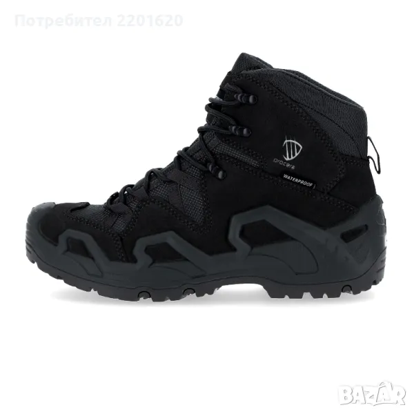 с материя OXFORD и водоустойчива мембрана, осигуряваща комфорт дори при трудни метеорологични условия. Подметката от полиуретан-каучук гарантира сигурно стъпване върху всякакви повърхности, а EVA омекотяващата система под петата позволява дълготрайна комфортна употреба. Високи, гумени капаци на петата и пръстите предпазват от удари и повреди. Езикът на маншона предотвратява навлизането на пясък и чакъл.