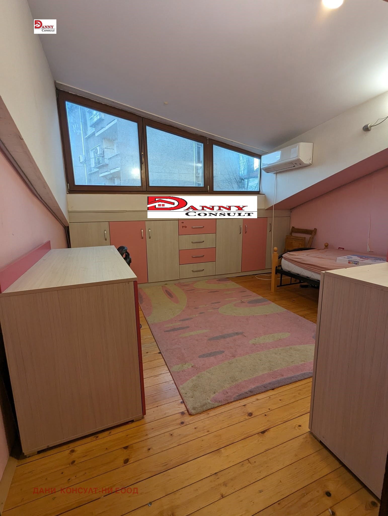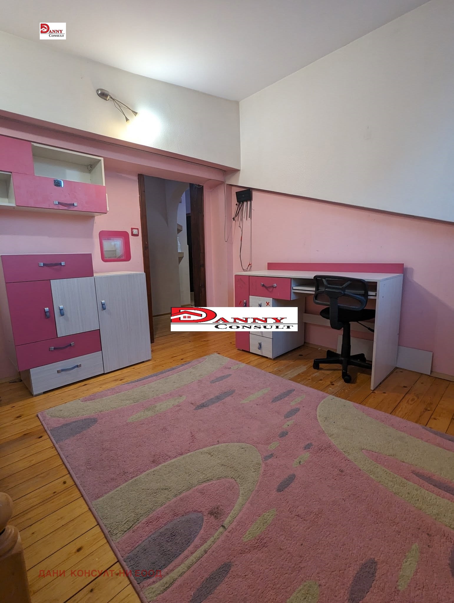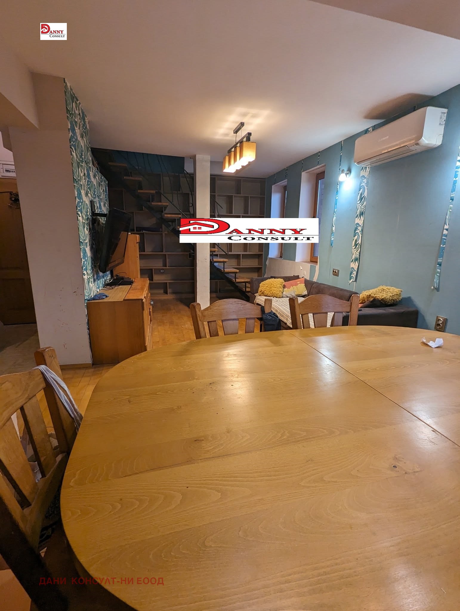 Агенция за недвижими имоти ДАНИ КОНСУЛТ предлага на своите клиенти просторен и стилно обзаведен мезонет в центъра на гр. Велико Търново. Мезонетът е с РЗП от 180 кв.м, разположен на четвърти и пети етаж с изложение юг/запад/север и се състои от два отделни имота, етажите са с отделни партиди за ток и вода. Първият етаж е 46,71 кв.м и е разпределен между: входно антре, дневна с кухненска част и обособен кът за хранене, баня с тоалетна. Вторият етаж е 95,45 кв.м където са поместени четири спални, като едната е с тераса, коридор, баня с вана и отделно тоалетна. Към имота има прилежащо избено помещение с площ от 13,10 кв.м. Подовите настилки са буков паркет и теракот, дограмата е PVC, жилището се предлага с наличното обзавеждане. Локацията е отлична, разположен на тихо място, в близост до магазини, супермаркети, заведения, автогара, спирки на градския транспорт, парк, училище и детска градина, като всичко това е на пет минути пеша.