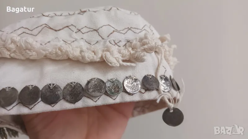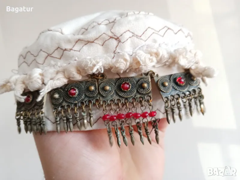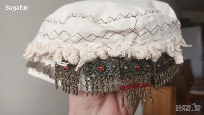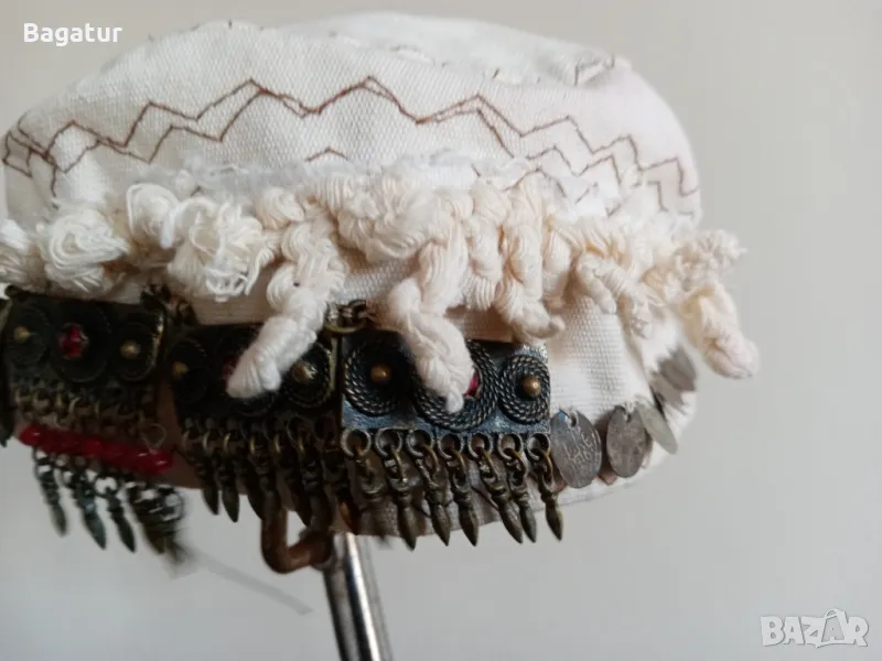 Етно шапка,носия,бронз,сребро,кърпа,накит,монети,Боне,таке,фесче → Обява 49177141