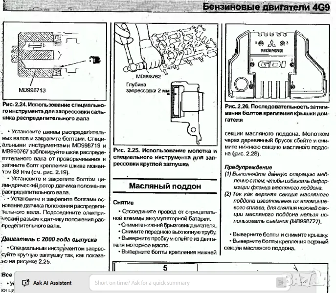 Изданието съдържа подробна информация за диагностика, ремонт и настройка на двигателя, елементи на системата за управление на бензинови двигатели (запалване, системи за впръскване на горивоGDI и MPI),регулировка фазите на газоразпределението,синхронизация на клапаните и движения на клапаните MIVEC), стартерни системи, системи за запалване, инструкции за използване на системите