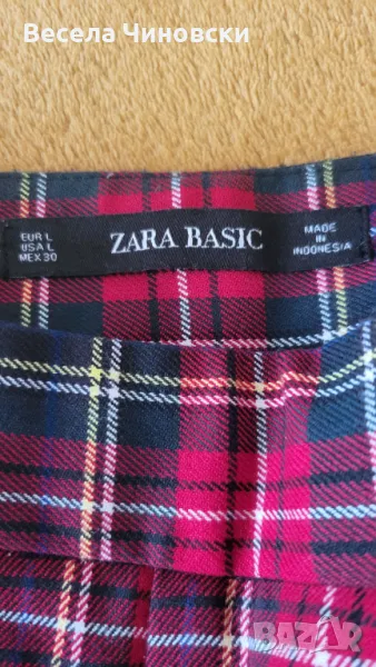 Дамски кариран панталон в червено, марка Zara. Използван.