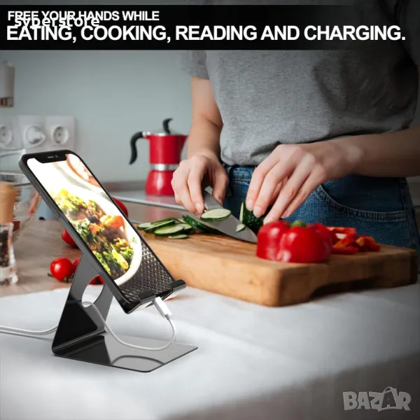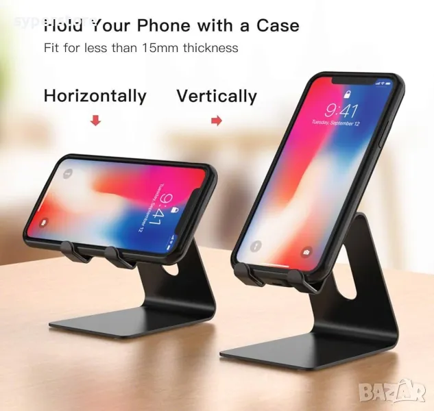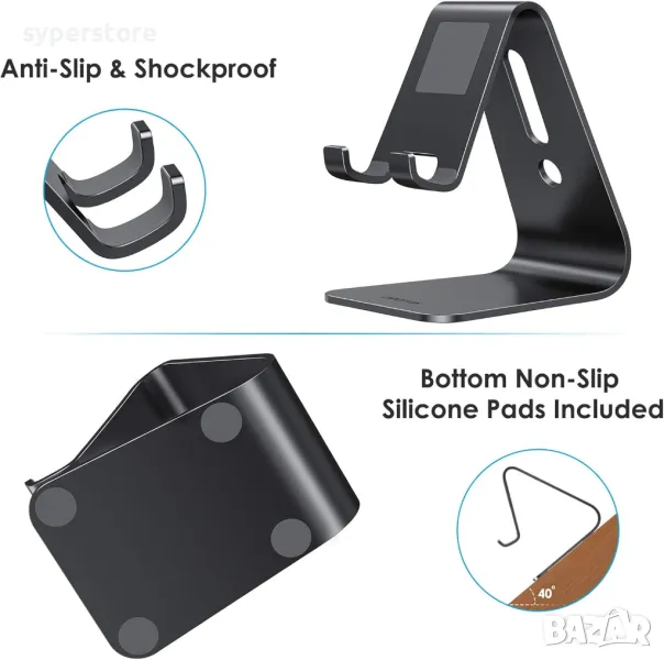 Универсална стойка за телефон подходяща за всички видове мобилни телефони, смартфони, с омекотени зони на захват, предпазващи устройството ви.Преносима стойка за телефон с дизайн против хлъзгане, гумирани подложки против преплъзване.