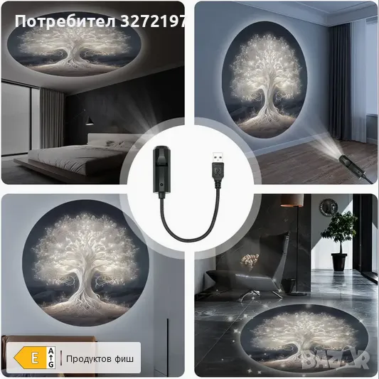 USB Захранвана LED Проекционна Светлина-Дърво на Живота