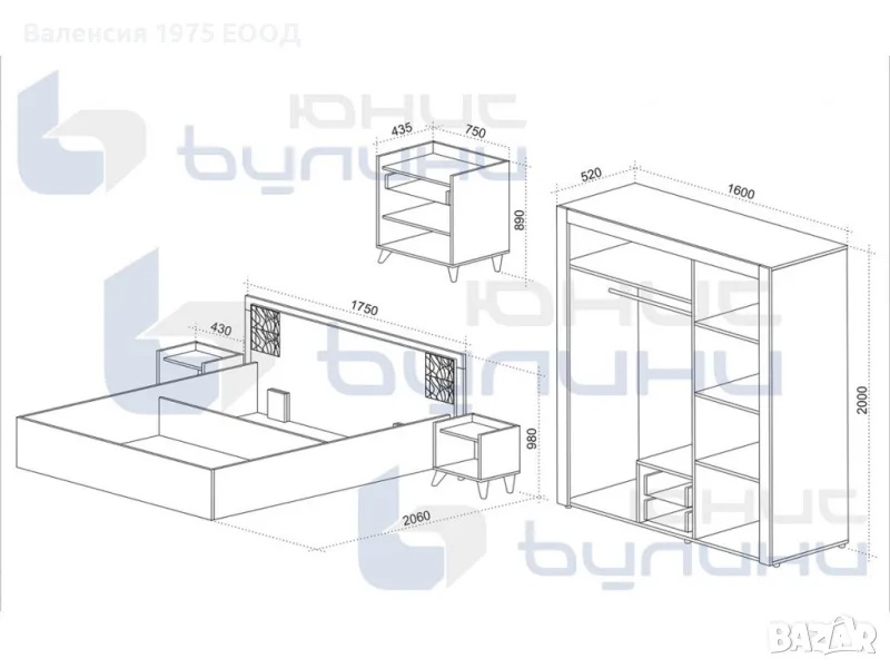 Спалня: 261/ 206/ Н98 см( височина на касата 35 см);