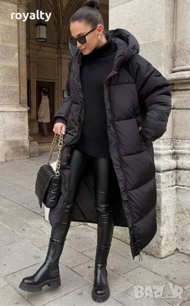 Черно зимно дълго дамско яке → Обява 49179525