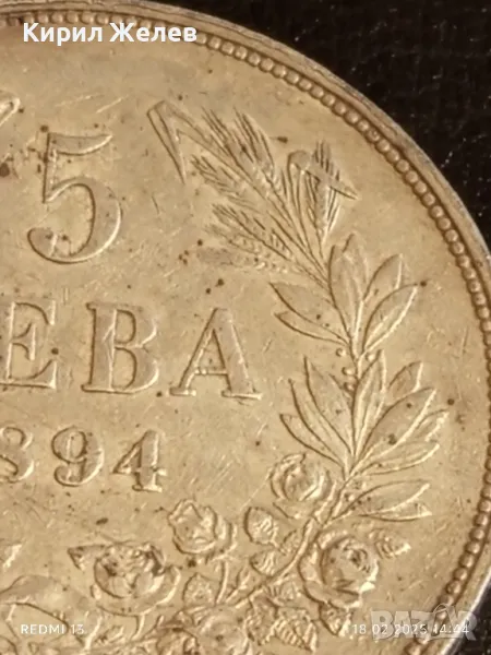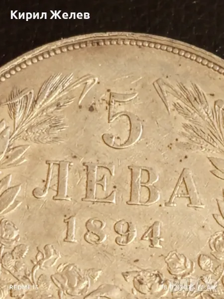 Сребърна монета 5 лева 1894г. Княжество България Княз Фердинанд първи 50076