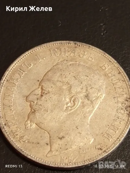 Сребърна монета 5 лева 1892г. Княжество България Княз Фердинанд първи 50052 → Обява 49179996