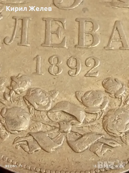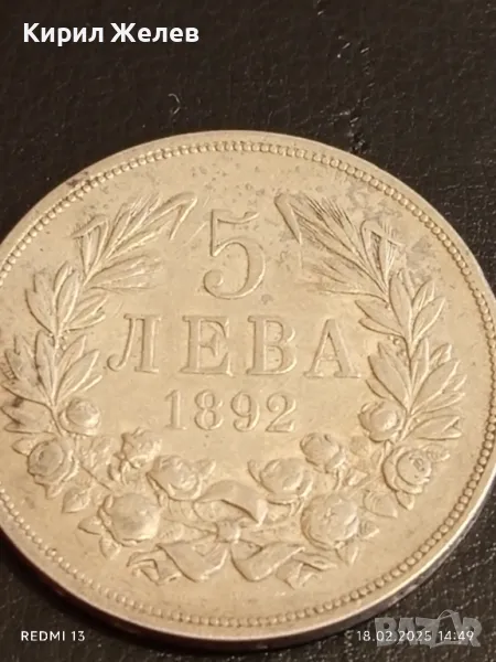 Сребърна монета 5 лева 1892г. Княжество България Княз Фердинанд първи 50052