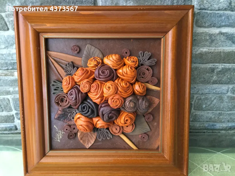 Картина „Цветя“ , техника: кожа и акрил, художник :
