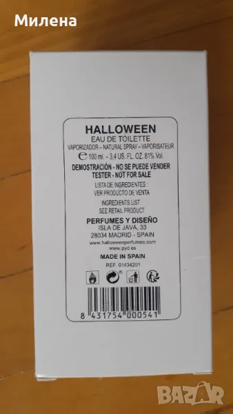 Тоалетна вода Jesus Del Pozo Halloween 100 ml тестер. Произведена в Испания, както се вижда от опаковката. Пръснато е само веднъж, за да се пробва. Напълно запазени кутийка и шише. На снимките се вижда, че парфюмът е пълен до горе, шишенцето е капсуловано.