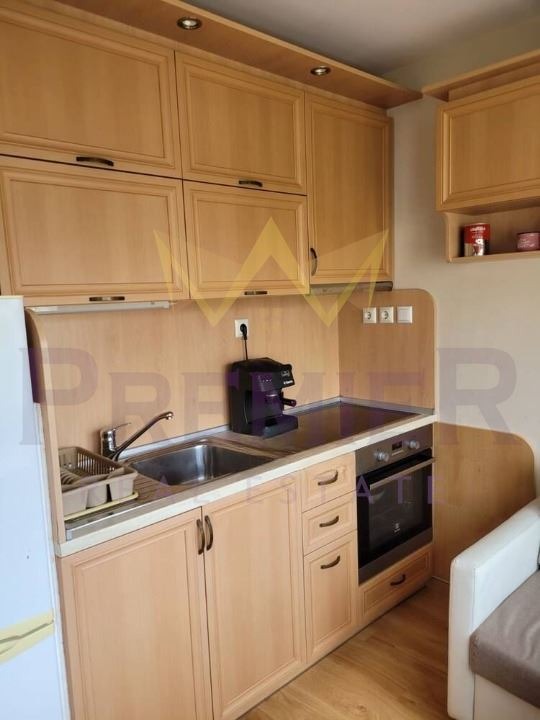 Кухня: Кухнята е напълно оборудвана с всички необходими уреди фурна, печка, хладилник, миялна машина. Към кухнята има и малка тераса, подходяща за сутрешно кафе или бързо излизане на чист въздух.