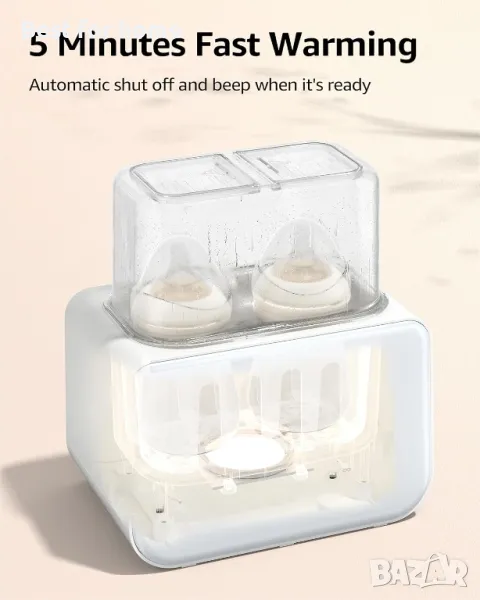 【Автоматично изключване】Нагревателят за бутилки ще се изключи автоматично с таймер, когато млякото е готово. Отидете и сменете бебето си, върнете се и готово! Никога не се притеснявайте от прегряване и винаги излиза с точна температура.