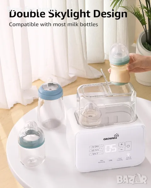 Нагревател за бебешки шишета, Grownsy 8-в-1 бърз нагревател на мляко с таймер за кърма или адаптирано мляко, подходящ за 2 бутилки, прецизен контрол на температурата, с функция за размразяване, стерилизиране, съхраняване, загряване на бурканчета за бебешка храна.