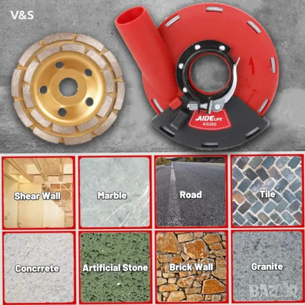 Смукателен капак Aidelife за ъглошлайф 115/125 мм + колело с диамантена чаша 125 мм x 22,2 мм за бет