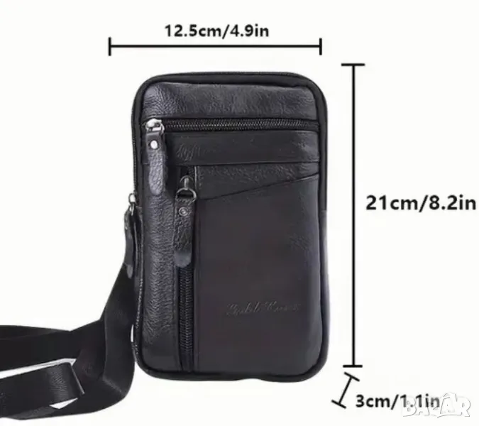 Качествена чантичка от естествена кожа за кръст и през рамо с голямо вътрешно отделение разделено на две части,два външни предни джоба с ципове/вижте снимките/ . Разгледайте и другите ми обяви за парфюми, техника и Ала-бала 🙂